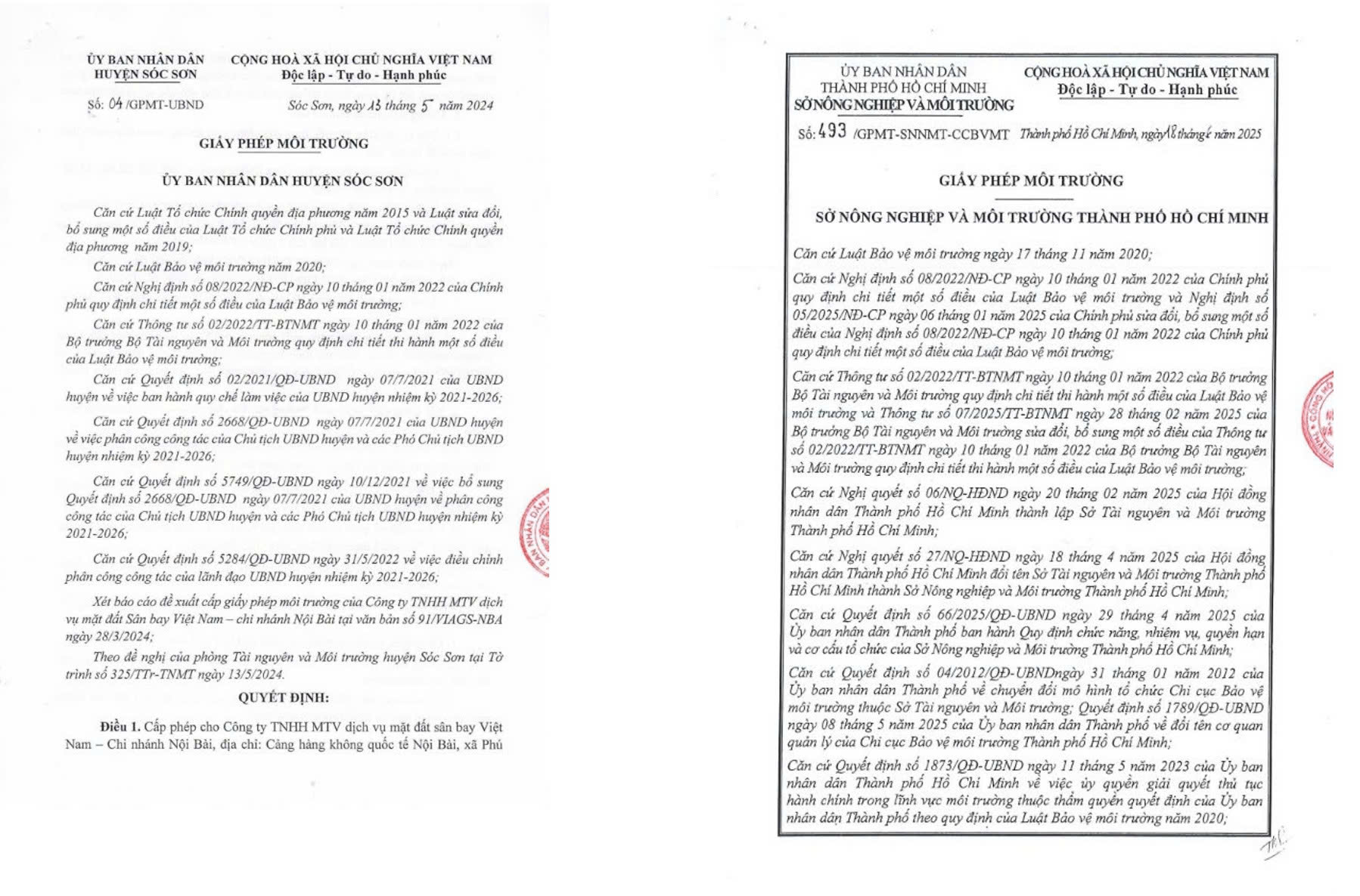 - Tại Chi nhánh Tân Sơn Nhất: Giấy phép môi trường số 493/GPMT-SNNMT-CCBVMT ngày 18/6/2025 do Sở Nông nghiệp và Môi trường TP.HCM phê duyệt.