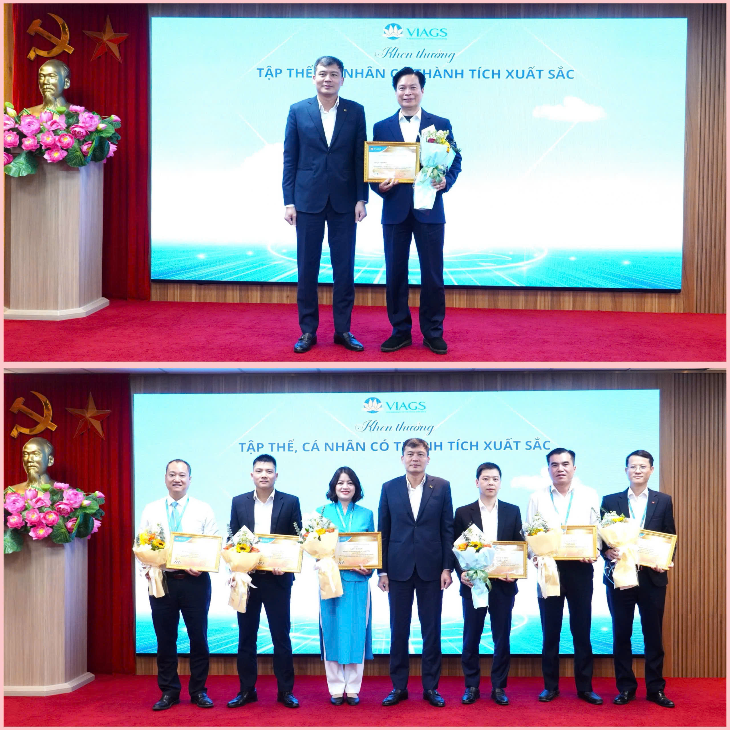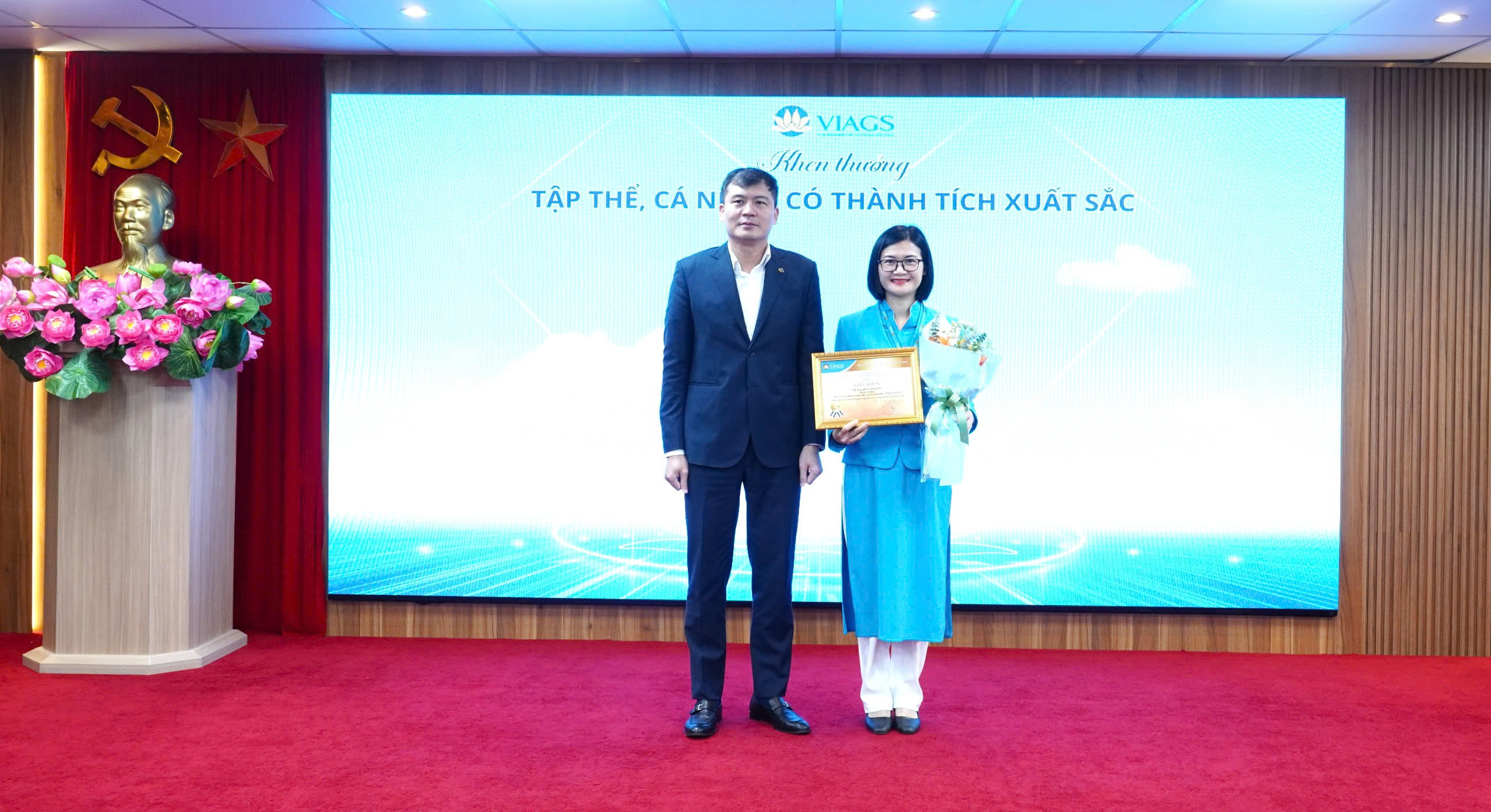 TGĐ Nguyễn Xuân Phúc trao Giấy khen cấp Công ty và tặng hoa chúc mừng cho các cá nhân gương Người tốt việc tốt VIAGS và cá nhân đạt danh hiệu “Nhân viên điển hình về ngôn ngữ dịch vụ chung của VIAGS” năm 2025: