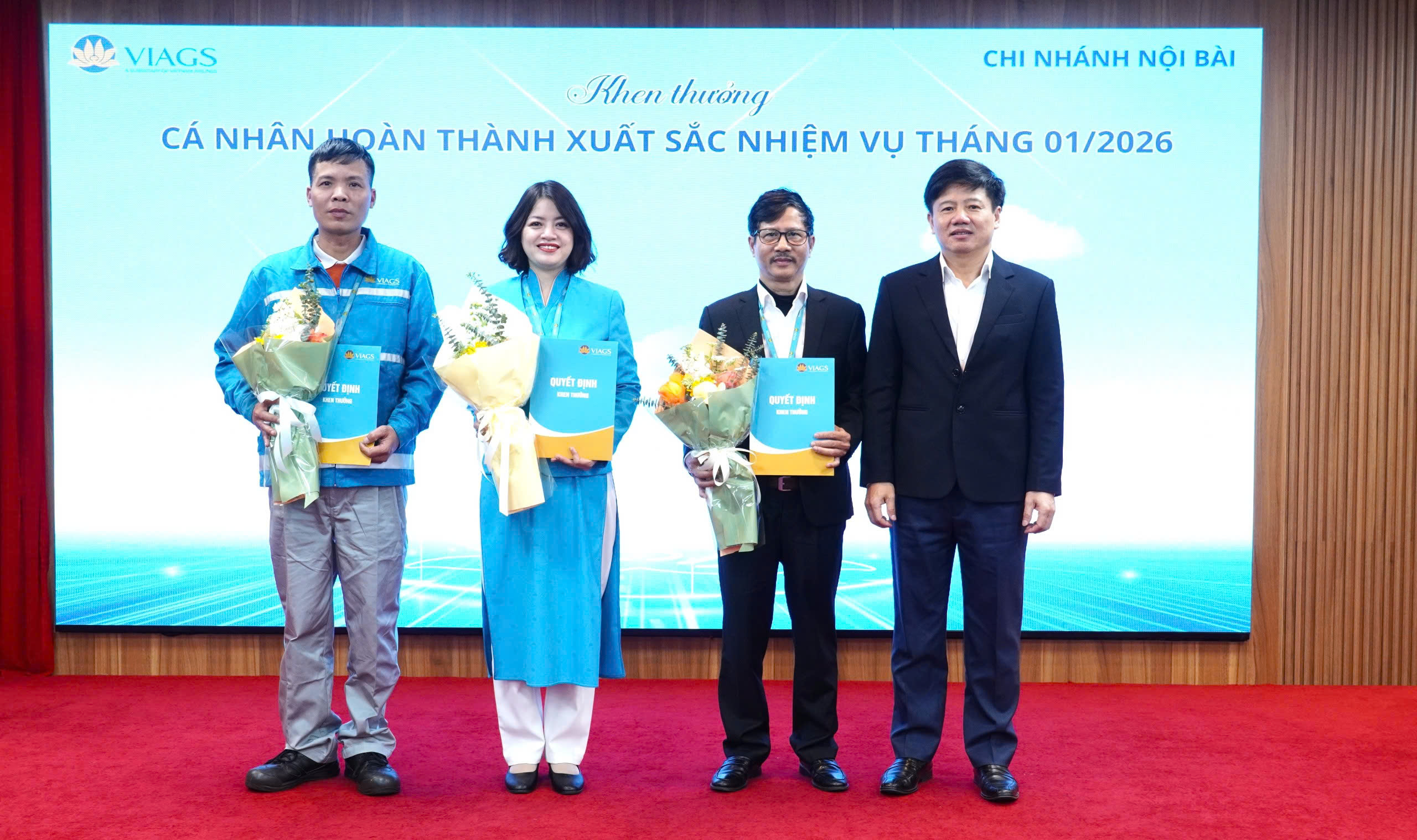 PGĐ CN Phạm Ngọc Hương trao phần thưởng và hoa chúc mừng tới 03 cá nhân hoàn thành xuất sắc nhiệm vụ của VIAGS NBA tháng 01/2026.