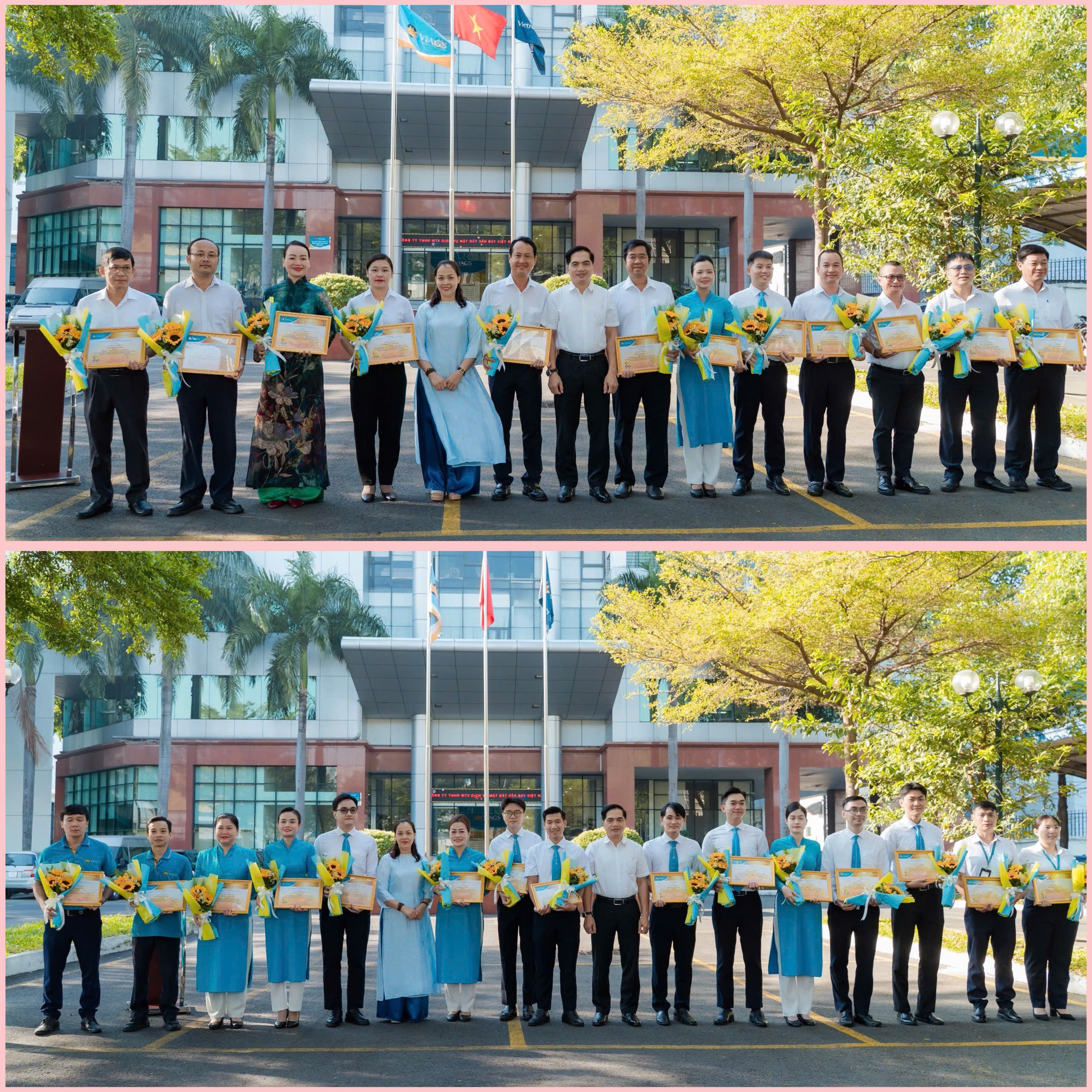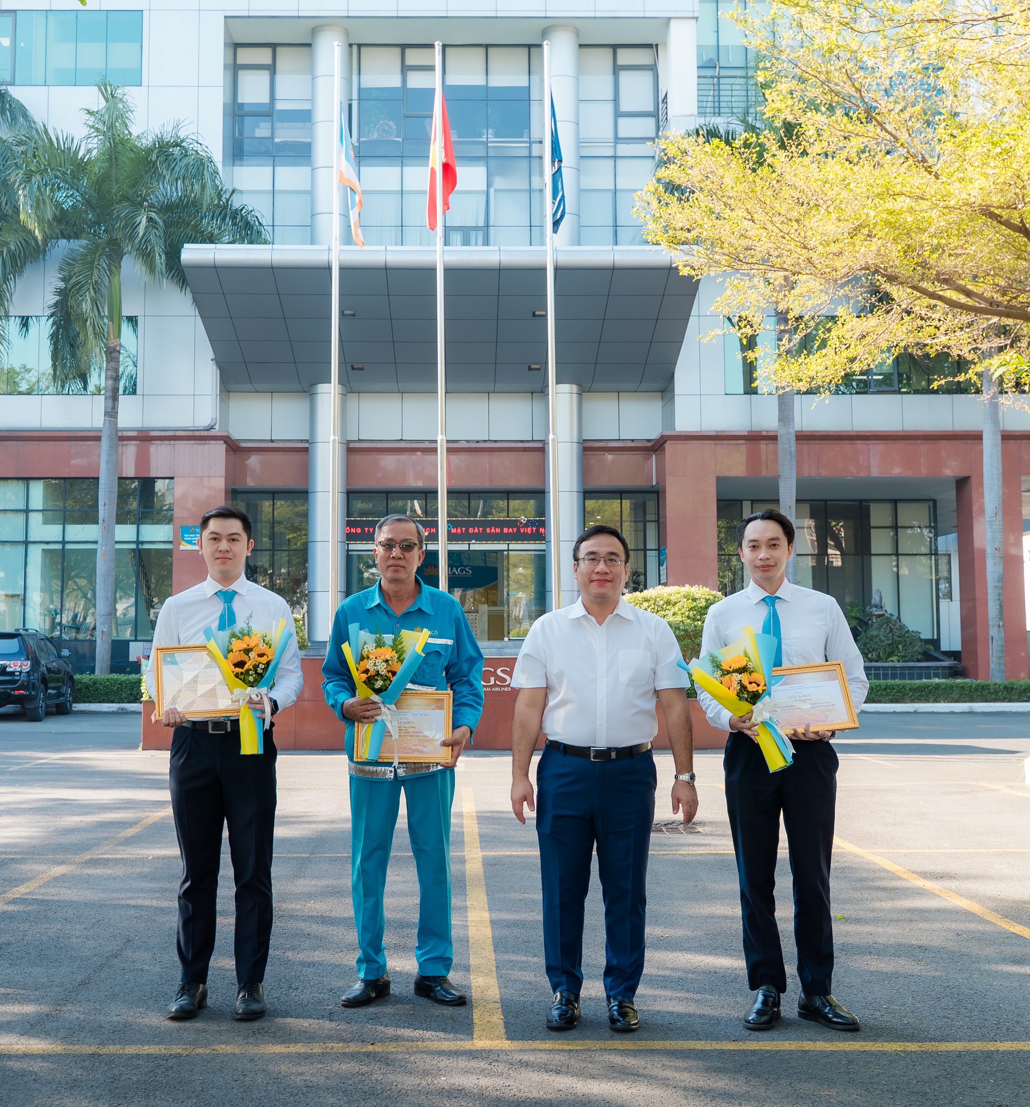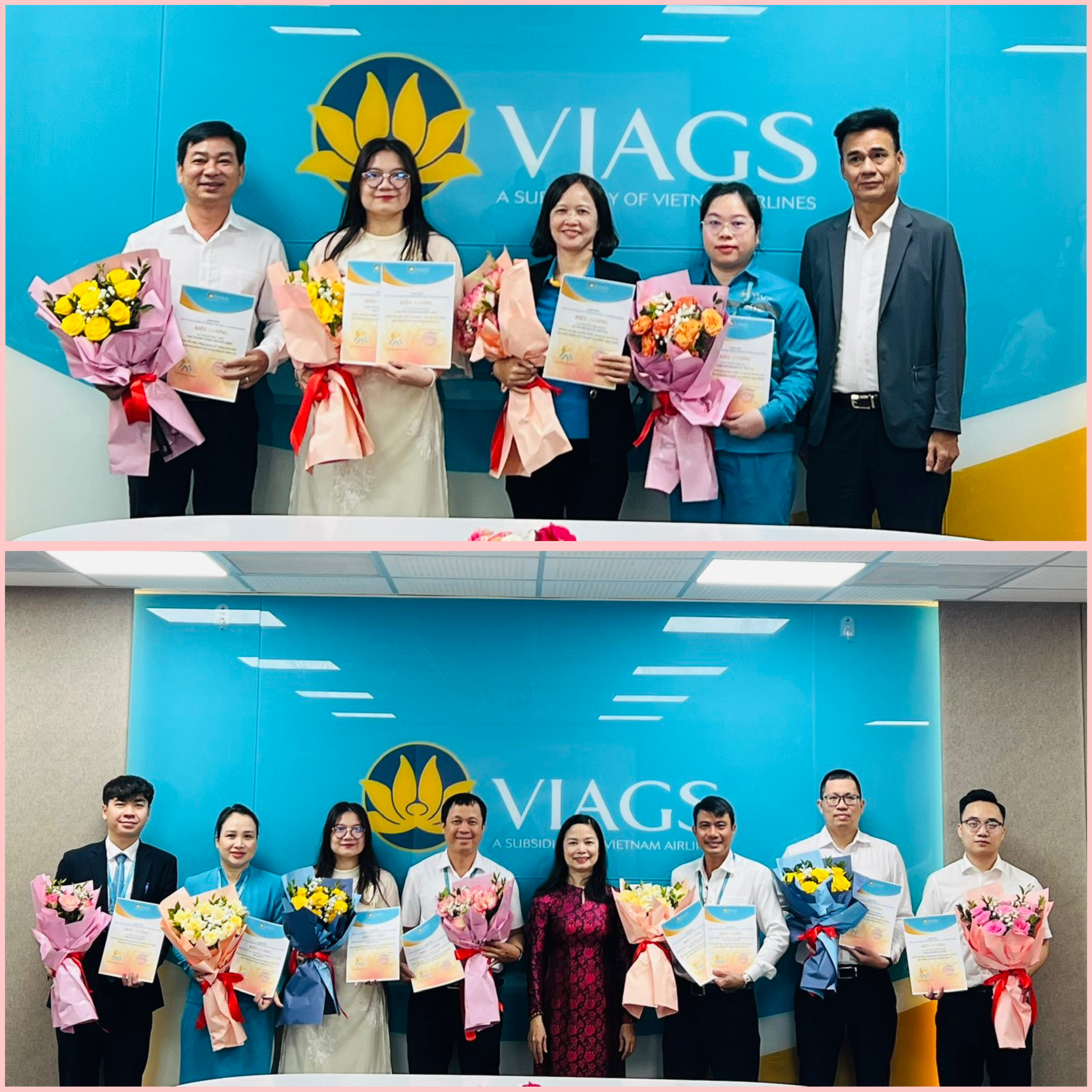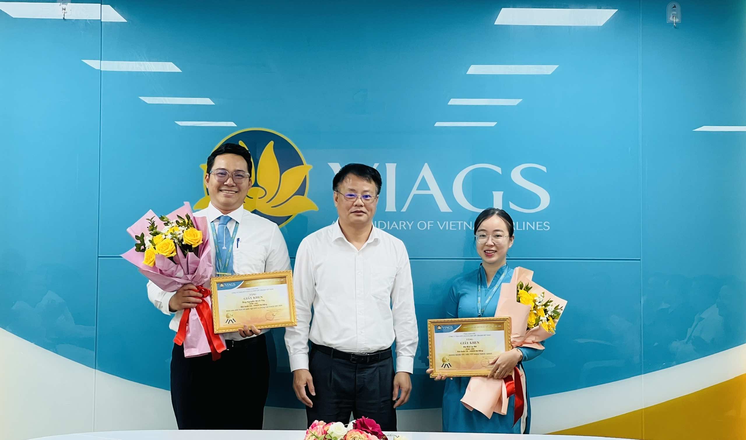 GĐ CN Phạm Phú Yên cùng PGĐ CN Nguyễn Vĩnh Hưng đã trao Thư biểu dương và hoa chúc mừng cho các cá nhân đạt thành tích xuất sắc trong công tác phục vụ bay và Gương người tốt việc tốt của VIAGS TSN.